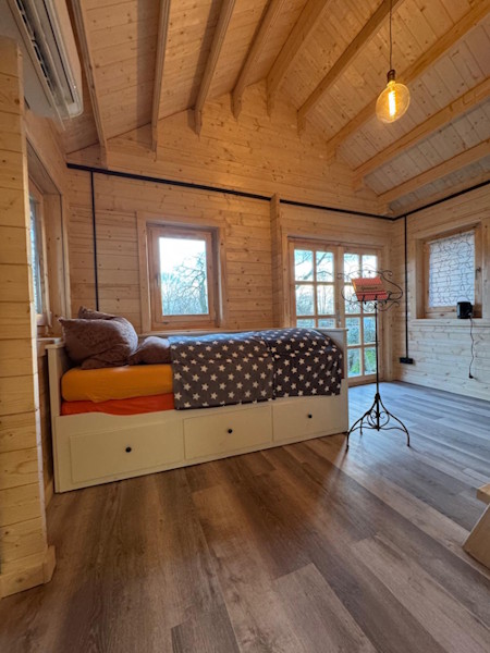 Die Apartments Lakeview und Goosebarn am kleinen Teich mit Terasse für 4 Personen.