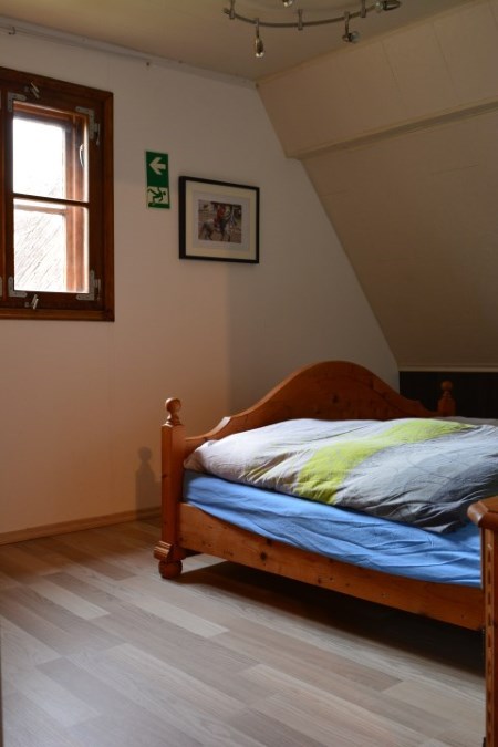 Schlafzimmer mit Doppelbett und das Wohnzimmer mit einer Schlafcoach