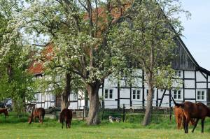 Besonderen Wert legen wir auf artgerechte Tierhaltung und den Erhalt bedrohter Haustierrassen. So züchten wir unter anderem die seltenen Lippe-Gänse und die traditionsreichen Senner-Pferde – beide fest verankert in unserer regionalen Kulturgeschichte.